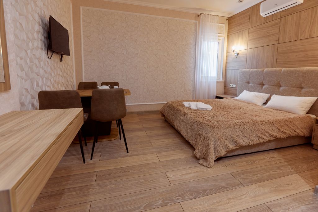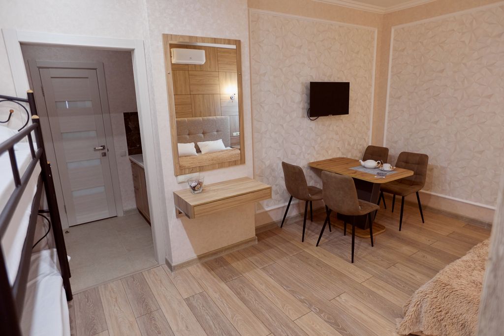Отель "Вилла Мира" расположен в тихом курортном районе Алушты. Море и пляж находятся всего в нескольких минутах ходьбы. В 500 метрах от нас есть продуктовый магазин. До городской набережной Алушты можно доехать на электрокарах. У отеля есть собственная крытая стоянка для машин, расположенная непосредственно возле отеля и находящаяся под видеонаблюдением. На крыше второго корпуса отеля находится зона отдыха + смотровая площадка. Там Вы сможете отдохнуть в гамаках, позагорать на шезлонгах, посмотреть телевизор, поиграть в настольный теннис. Также на территории зоны отдыха есть бар и мангал, где для Вас могут пожарить вкуснейшее мясо. Ваши дети тоже останутся довольны, так как в их распоряжении будет детский уголок и PlayStation4. И все это с видом на море. В нашем отеле есть кафе, в котором Вы сможете всегда вкусно и недорого покушать. Во всех номерах есть душ, туалет, электрический чайник, сейф, фен, холодильник, плоский телевизор, кондиционер, набор личной посуды. Из некоторы