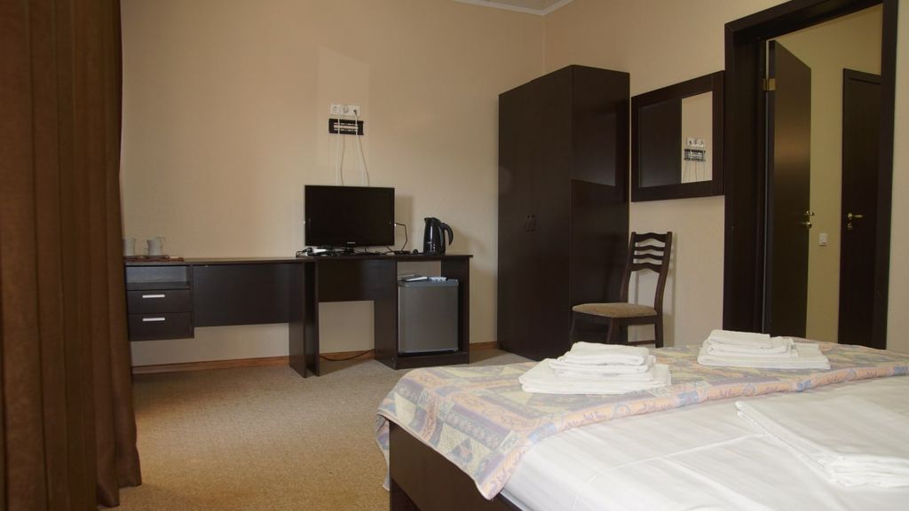 Об объекте: гостиничный комплекс «Атлет» находится в живописной местности курорта Кучугуры на 1-ой береговой линии, в спальном районе поселка. До центра можно добраться пешком за 30 минут. Рядом работает продуктовый магазин, где можно купить необходимые продукты, и мини-рынок. Жилой фонд состоит из комфортабельных номеров разной степени уюта и оснащенности, а также отдельного бунгало. Территория располагает двумя бассейнами, лежаками, собственным баром, местом для парковки транспорта, беспроводным интернетом и прачечной. Дети смогут прекрасно отдохнуть в игровом уголке. По желанию есть возможность организации праздников, свадеб. «Атлет», гостиничный комплекс в Кучугурах, предлагает комфортный отдых по приемлемым ценам. Приезжайте — мы всегда рады видеть вас! Описание номеров: Большие, просторные номера. Расстояние: Пляж песчаный — 1 минута. Центр — 2–3 минуты на авто. Центр развлечений — 2–3 минуты на авто. Аквапарк — 30 минут на авто. Дельфинарий — 30 минут на авто. Рынок