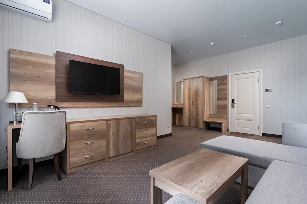 Дети до 3 лет можно бесплатно без предоставления дополнительного места, дети до 5 лет предоставляем кроватку, бесплатно. Включена двуспальная кровать 180/200 + дополнительное место (диван-кровать 200/210). 2 тв с плоским экраном; Шторы; Шкаф-гардероб; 2 тумбочки; Зеркало; Подставка для чемоданов; 2 письменных стола, стулья; Журнальный столик; Посуда, чайник; Холодильник; Кондиционер. Есть большой балкон и французский балкончик. Санузел: душ, раковина, фен, унитаз, полотенца, туалетные принадлежности.