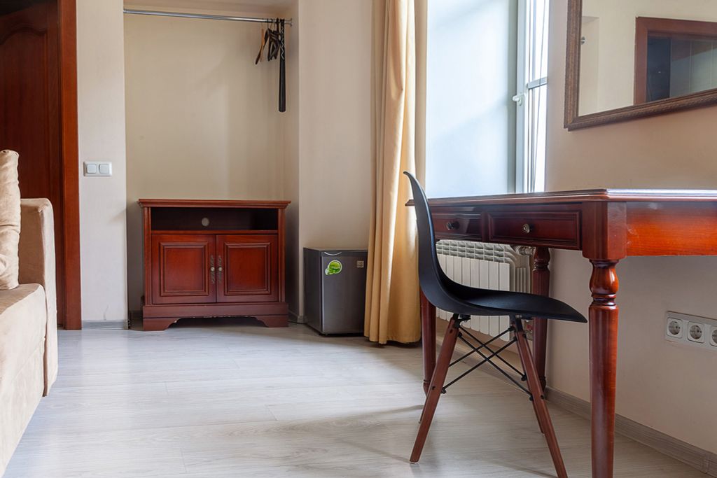 Уютная семейная мини- гостиница в центре самой оживленной улицы Санкт-Петербурга. Небольшое количество номеров на четвертом этаже исторического жилого дома на Невском проспекте – гарант спокойного отдыха и неспешных прогулок по достопримечательностям Северной столицы. В шаговой доступности остановки общественного транспорта, станция метро Маяковская, бесчисленное множество кафе и ресторанов.