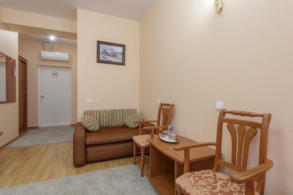 Отель расположен в здании Бизнес-Центра на Коломяжском проспекте Приморского района – в самом экологически чистом районе города Санкт-Петербурга рядом со ст. метро «Пионерская». К услугам наших гостей 8 номеров различных категорий (в стоимость проживания включен полноценный завтрак с горячим). Возможно в стоимость проживания включить обед и ужин. У входа в отель расположена бесплатная парковка, количество парковочных мест ограничено. Просторные номера оформлены в классическом стиле, уютных тонах. В каждом номере мебель, изготовленная на заказ по индивидуальному проекту, ковровое покрытие, мини-бар (холодильник), телефон, кондиционер, высокоскоростной Интернет доступ Wi-Fi, кабельное телевидение. В ванной комнате душ, фен, полотенцесушитель, туалетные принадлежности. К услугам микроволновая печь, гладильные принадлежности, столовая посуда, кулер с горячей и холодной питьевой водой, чай, кофе.