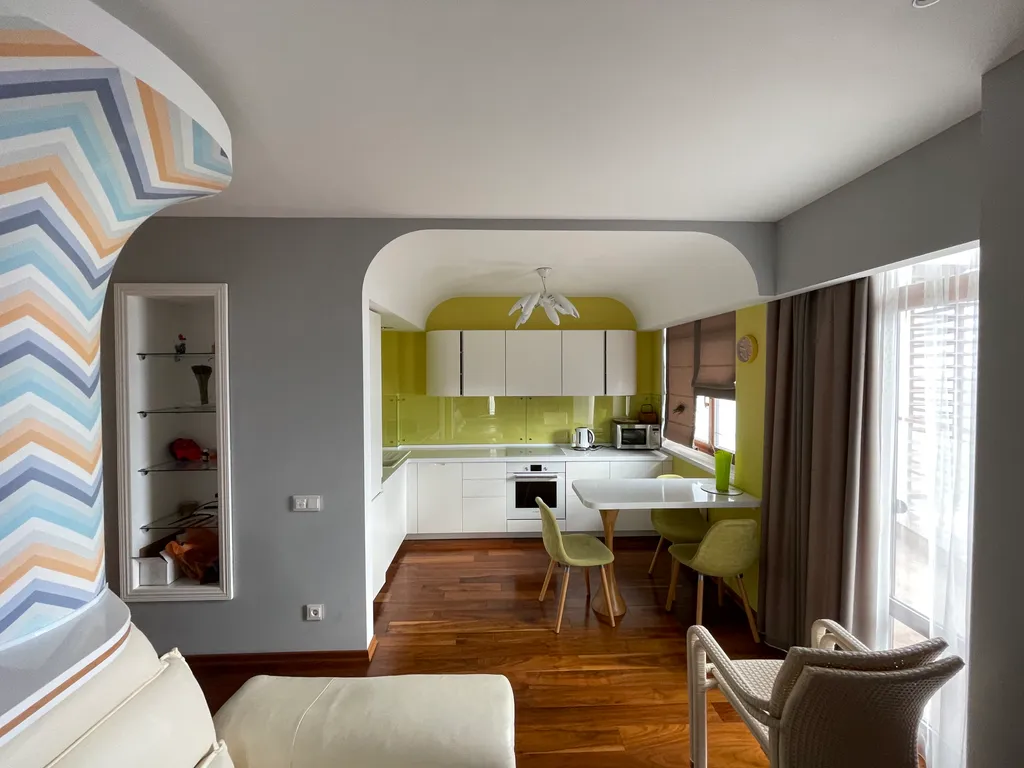 Представьте, что открываете вы глаза утром. А перед вами открывается невиданный ранее вами вид на горы, которые при восходе приобретают оттенок красной глины. И чем выше поднимается солнце, тем золотистее они становятся. Для вашего комфортного отдыха 3-комнатная квартира с двумя санузлами (ванная с видом на горы и душевая), кухня, фильтр для воды, оборудованная всей техникой, полноценный набор посуды для приготовления еды, 2 балкона с видом на море и на горы, 2 спальни с комфортными ортопедическими матрасами, зона ТВ с раскладным диваном. Максимальное заселение 6 человек (2+2+2) + 1 детская кроватка до 2-х лет. Шикарная квартира 88 кв. м. 2 отдельные комнаты + студия. 2 сан узла. Идеально семейным