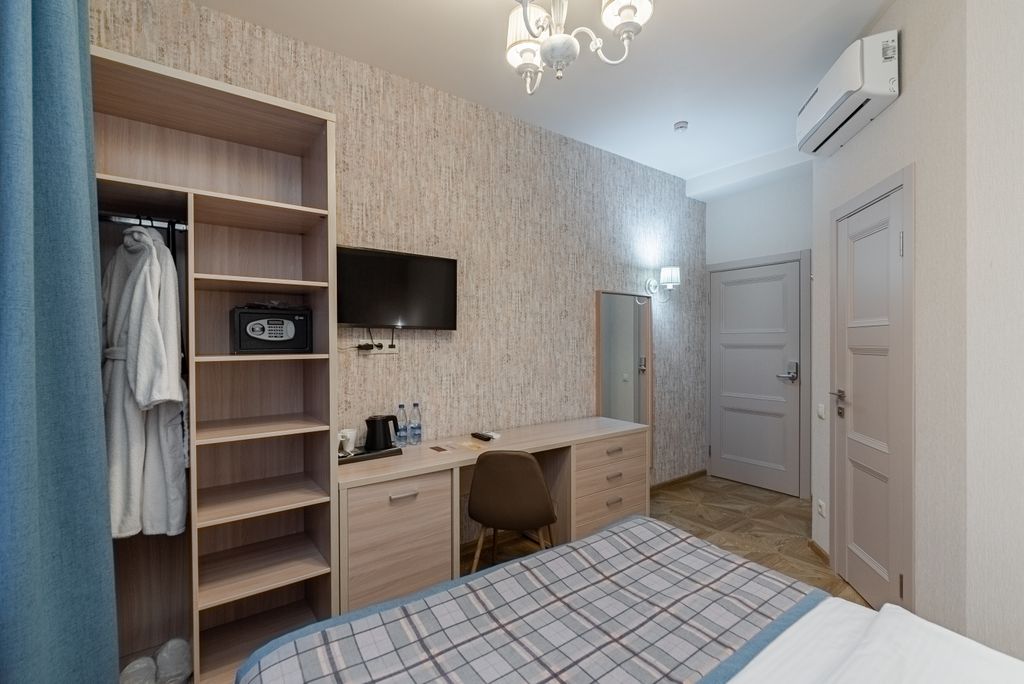 Новый дизайнерский бутик-отель Дюжина, расположен в центре Москвы, в Мещанском районе. На территории отеля имеется бар, где предоставляются напитки. питание подается в номер по времени, указанному и удобному гостю. Номера оснащены всем необходимым - мини-холодильник, сейф, фен, чайная станция, бутилированная вода, мыльные и косметические принадлежности, халаты, тапочки, полотенца. Имеется охраняемая бесплатная парковка. Wi-Fi бесплатный, на всей территории отеля. Стойка рецепции работает круглосуточно. В отеле соблюдаются все противоковидные меры. Также в отеле имеется один номер улучшенной категории Стандарт Романтик со специальным пакетом услуг, включенных в стоимость проживания в течение суток: шампанское + фруктовая тарелка, пироженка + шоколад, бесплатный завтрак по меню с двумя чашечками ароматного турецкого кофе, специальный романтический дизайн в номерах. Стоимость пребывания в номере в течение суток на двоих человек 6 300 руб. Есть новый номер на двоих человек Люкс Премиум