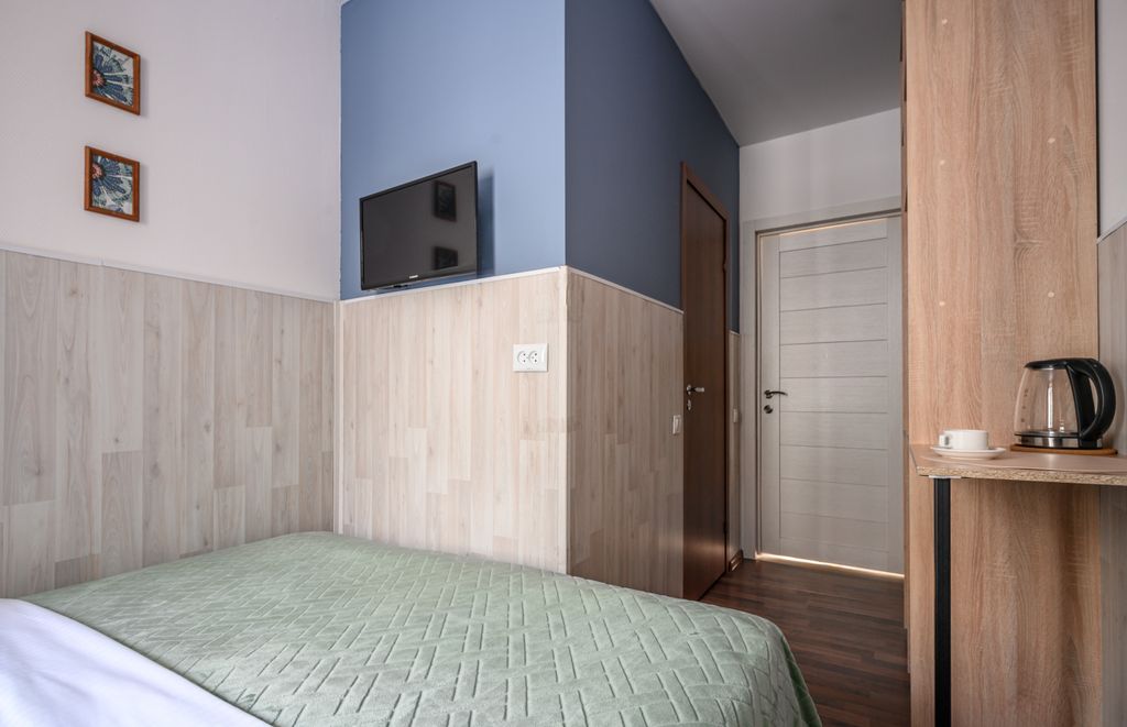 Очень удачное местоположение отеля идеально подходит для путешественников, прибывающих в петербург на московский вокзал или планирующих продолжить поездку на поезде. Отель располагается на уединенной и тихой полтавской улице – в центре исторического петербурга. В то же время вы лёгко дойдете до московского вокзала пешком всего за 3 минуты: вход на главный вокзал города ­находится в 400 м от отеля. В отеле выполнен свежий ремонт в скандинавском стиле: яркие цветные оттенки в сочетании с палитрой натурального дерева создают мягкую расслабляющую атмосферу. Номера отличаются уютной обстановкой и повышенной комфортностью. Каждый номер имеет собственную ванную комнату, телевизор, вместительный шкаф с вешалками, прикроватные тумбочки и стол для чаепитий. Также всем гостям предоставляются чайник, посуда, гель для душа/шампунь. Спальные места оборудованы качественными матрасами престижной компании askona. В отеле работает бесплатный доступ к интернету через wi-fi. На общей территории гости мог