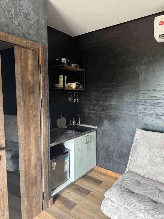 Вместительный двухкомнатный домик с новейшим стильным дизайном. В первой комнате вас ждет мини кухня со всем необходимым для приготовления завтрака обеда и ужина, удобный диван и журнальный столик для отдыха, а так же выход на террасу. Вторая комната - спальная зона с большой двухместной кроватью.