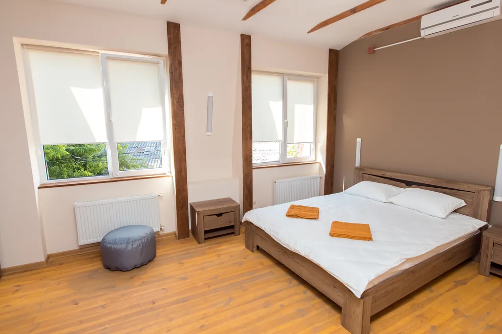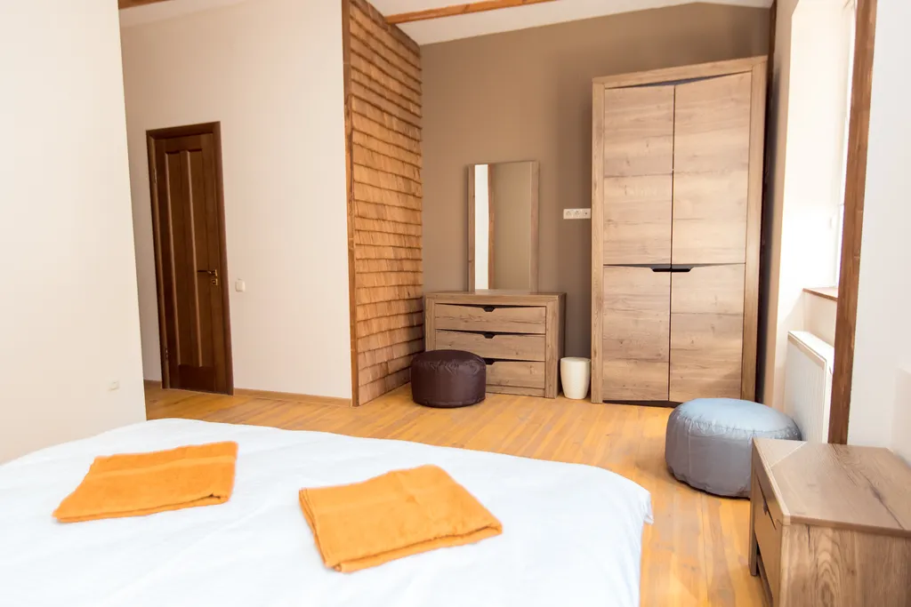 Лучший вариант для тех, кто хочет получить максимальный комфорт, а также для любителей побыть наедине с любимым. В просторном уютном, с оригинальной отделкой, номере расположена двуспальная кровать с ортопедическим матрасом. Все отделочные материалы произведены только из натуральных ЭКО компонентов. Кондиционер, персональные прикроватные тумбочки, мебельный гарнитур, паркет, TV, WiFi и полную тишину, и покой - всё это вы получите, остановившись в этом чудесном номере! Санузел в номере с качественной сантехникой, душевой кабиной не оставит вас равнодушными.