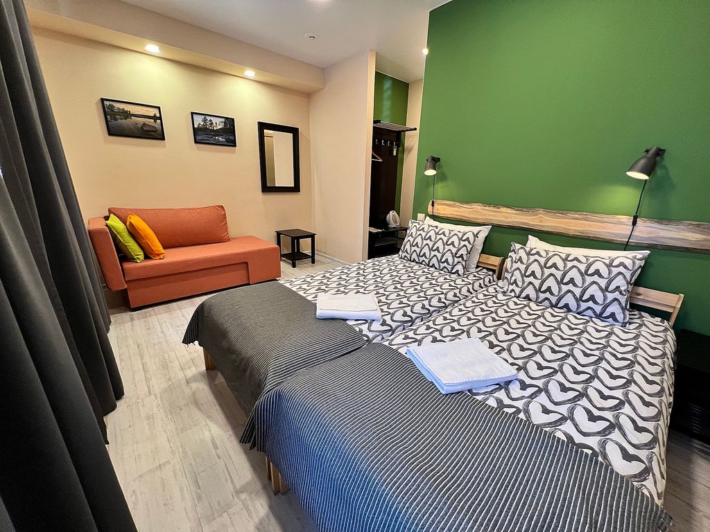 Мини-гостиница, находится в самом центре города мурманска на тихой улице. В гостинице всего 5 номеров, каждый из которых оснащён собственной ванной комнатой и душем. Номера рассчитаны на 3х человек максимум. В гостинице есть общая полностью оборудованная кухня, на которой можно самостоятельно готовить. Цена за ночь на 1 человека - 3300 рублей. Цена за ночь на 2 человек - 3800 рублей. Цена за ночь на 3 человека - 4300 рублей.