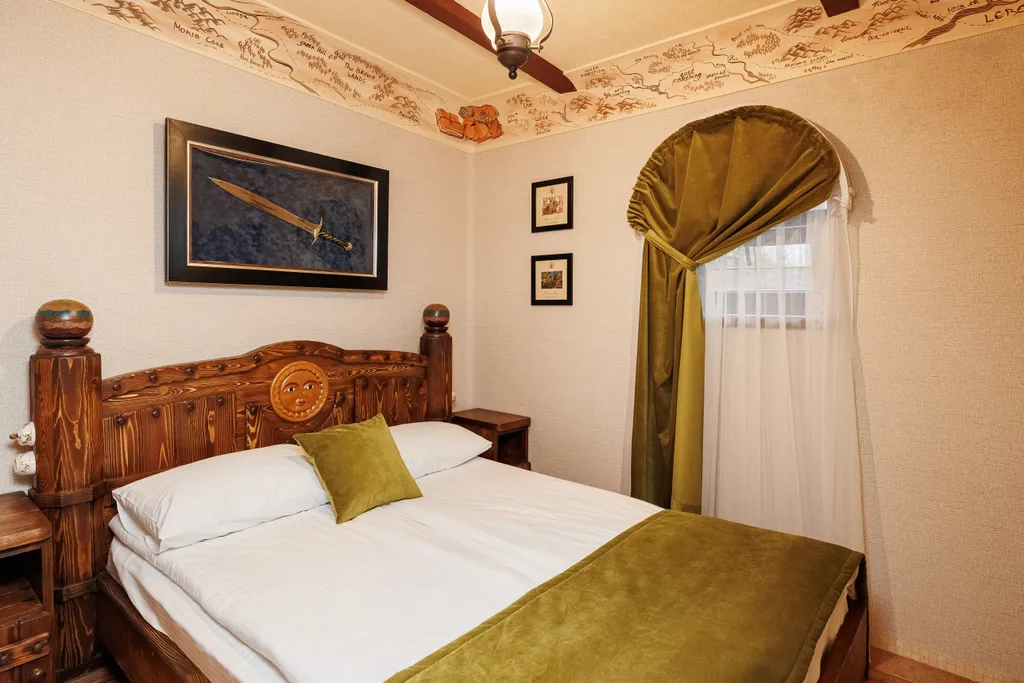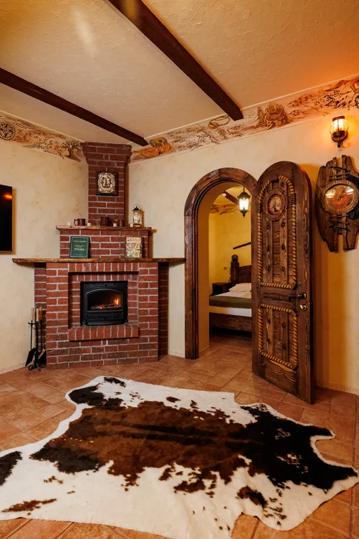 Сказочный домик под горой, 60 м. кв. Для комфортного размещения 4 взрослых с большой гостиной, инфракрасной сауной и площадкой для барбекю. Возможно размещение дополнительных мест за дополнительную оплату (2 детей до 16 лет). Один ребёнок до 3 лет — можно без отдельного спального места (спит с родителями), завтрак не включен.