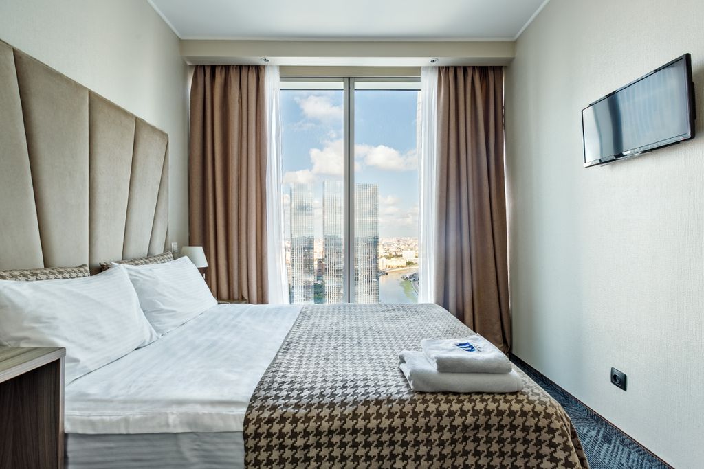 Из всех окон наших отелей открываются великолепные виды Москвы! Номера гостиницы «Панорама Сити» расположены на 48-м этаже башни «Империя» ММДЦ Москва-Сити. Для личного транспорта гостей предусмотрена парковка (платная, тарифы плавающие). Panorama City Hotel — идеальное место для работы и отдыха. Гостиница находится возле «Экспоцентра», всемирно известного выставочного комплекса, в самом сердце делового района Москвы. Здесь заключаются сделки века, проходят переговоры и конференции с международными партнерами. К вашим услугам множество магазинов, салонов красоты, фитнесс и спа центров, баров и ресторанов Москва-Сити. Семьям с детьми рекомендуем посетить Московский зоопарк — в 4 км на Большой Грузинской. В нем постоянно обитает более пяти тысяч животных. Познакомьтесь с историческими районами нашей столицы! Уникальная архитектура Пресненского района, храмы и монастыри поражают своей величественностью. С другой стороны от гостиницы — Храм Спаса на Песках, Новодевичий монастырь.