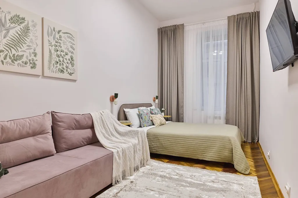 Flatstay галерная 26 | 3шка на 10 человек возле новой голландии Мы предлагаем в аренду 3-комнатную квартиру со свежим ремонтом и новой мебелью Для вашего комфорта в квартире: - 3 двуспальные кровати 160*200 +160*200 +140*200 + 2 раскладных дивана - 3 комнаты изолированы друг от друга + просторная кухня - Плита, свч и посуда для готовки, посудомойка, духовка - Фен, утюг, гладилка и сушилка - Стиральная машина - Wi fi и телевидение - Постельное бельё и полотенца на всех гостей - Средства личной гигиены - В ванной комнате ванная, фен, гель для душа и шампунь Обратите внимание: Расчетные часы - заселение после 15: 00, выезд до 11: 00. В рамках расчетных часов в квартире организовано круглосуточное бесконтактное заселение в любое удобное для вас время Есть страховой депозит 5000 рублей, возвращается в день выезда до 18: 00. Квартира не сдается под вечеринки и мероприятия Проживание с животными возможно по предварительному согласованию до бронирования. Стоимость - 1000 ₽ в сутки за