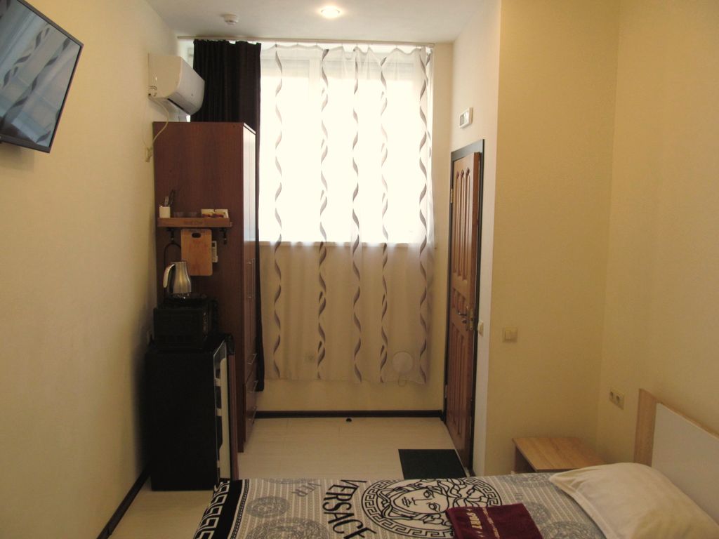 Мини-гостиница расположена в тихом зеленом районе, в 5-ти минутах от центра города! В шаговой доступности находится пляж на мысе Кунгасном, Спортивная набережная, Покровский парк, центральные улицы города. До остановки автобуса - 7 минут пешком. Рядом торговые центры и продуктовые магазины. В номерах нашей гостиницы имеется холодильник, микроволновка, чайник, кондиционер, Smart телевизор, ванная комната. Проживание с животными предварительно оговаривается.