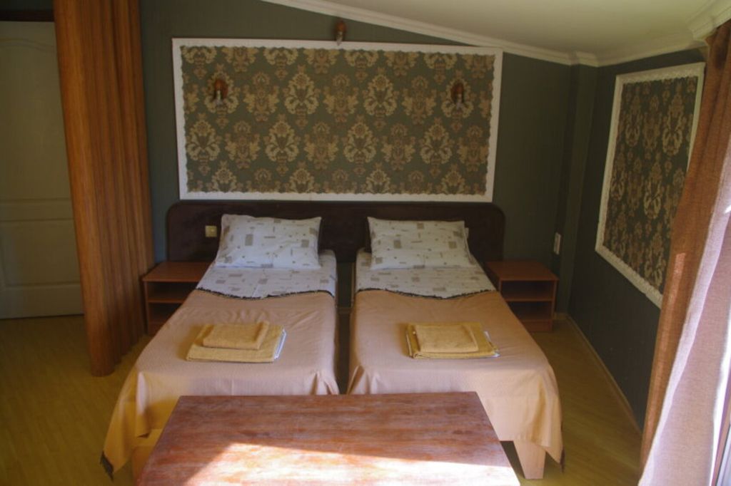 Гостиница расположена в центре г. Евпатория (парк им. Фрунзе), 50 м от ул. Московская. Центральный пляж находится в 100 м. В 50 метрах — дельфинарий. В 300 м — аквапарк и аквариум. На территории отеля расположено кафе европейской кухни. В отеле 10 двухместных номеров — стандарт. Один двухкомнатный номер (4 чел.). Во всех номерах санузел с душевой кабиной, ТВ, кондиционер, холодильник. Номера стандарт имеют дополнительное место (диван-кровать). 6 номеров расположены на втором этаже (с балконами). 5 номеров на 1-ом этаже. На всей территории отеля — Wi-Fi.