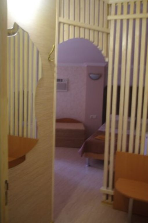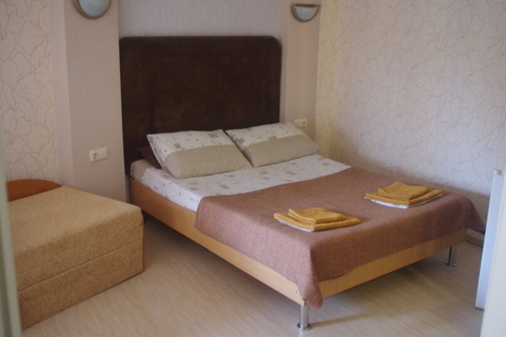Гостиница расположена в центре г. Евпатория (парк им. Фрунзе), 50 м от ул. Московская. Центральный пляж находится в 100 м. В 50 метрах — дельфинарий. В 300 м — аквапарк и аквариум. На территории отеля расположено кафе европейской кухни. В отеле 10 двухместных номеров — стандарт. Один двухкомнатный номер (4 чел.). Во всех номерах санузел с душевой кабиной, ТВ, кондиционер, холодильник. Номера стандарт имеют дополнительное место (диван-кровать). 6 номеров расположены на втором этаже (с балконами). 5 номеров на 1-ом этаже. На всей территории отеля — Wi-Fi.