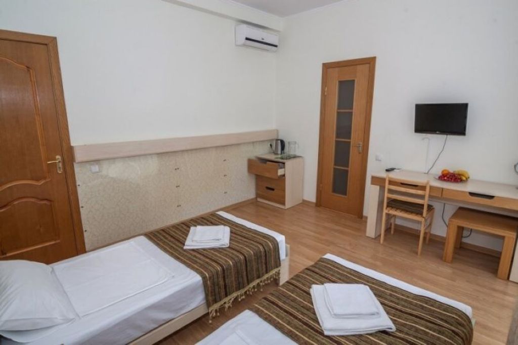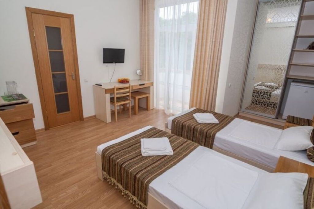 Расположение: поселок Орджоникидзе — это экологически чистое место, которое с трёх сторон омывается Черным морем. Здесь отсутствует промышленное производство, которое бы нарушало экологию. Поселок находится на полуострове, является тупиком, через него не проходит транзитный транспорт. В этом месте хороший чистый воздух, сочетание четырёх климатических зон: лесной, морской, горной и степной. Такой климат полезен для профилактики и лечения органов дыхания. Орджоникидзе расположен в 11 км от Феодосии и 8 км от Коктебеля, между входящим в море мысом Киик-Атлама (в пер. с тюркск. «прыжок дикой козы») и горой Джам-Кутан (в пер. с тюркск. «спасение души»). В 8 км от Орджоникидзе находится гора Клементьева, на которой расположен аэроклуб, где можно летать на аэропланах, дельтапланах, парапланах. На этой горе бывали и учились летать почти все космонавты СССР. Окрестности Орджоникидзе — хорошее место для поездок на горных велосипедах, занятия дайвингом, подводной охотой и рыбалкой. Гостевой дом