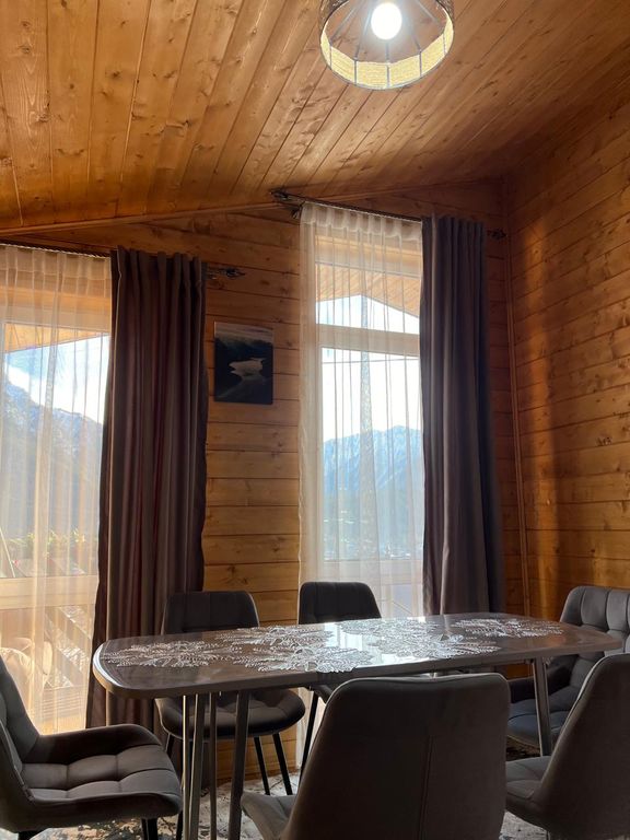 Уютные лоджии с панорамным видом на горы и лес, которые находятся в километре от центра поселка в тихом месте. До канатной дороги в поселке Романтик 10 км., для проезда можно воспользоваться услугами такси либо шатлом (в зимний сезон). К услугам гостей предоставляется баня на дровах, в которой могут с комфортом разместиться до 5 гостей. На территории есть мангалы для приготовления вкуснейшего шашлыка, с таким видом у каждого гостя просыпается талант шеф-повара. На веранде каждого домика стол с удобными стульями, не упустите возможность насладиться отличными видами. Для больших компаний на территории расположена комфортабельная беседка. В каждом номере есть все необходимое для комфортного проживания. К услугам гостей холодильник, чайник, микроволновая печь, телевизор, минимально необходимый набор посуды, чай, кофе. В двух часах неспешного подъема в гору находится водопад «Баритовый», по пути к которому можно заглянуть в пещеру. Данный маршрут могут преодолеть даже дети, для которых это