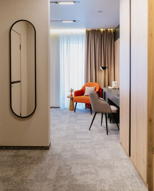 Дизайнерский апарт отель «Сибирель» — это современный городской отель в самом сердце Новосибирска, где сибирская природа встречается с минималистичным дизайном и уютом. Расположенный на шестом этаже нового здания с атриумом и летней зоной отдыха, отель создает атмосферу уединения и спокойствия — прямо в центре города, в нескольких минутах ходьбы от метро. Концепция «Сибирель» вдохновлена красотой и мощью сибирской природы. В интерьерах — природные оттенки, текстуры дерева и камня, чистые линии современного дизайна. Здесь каждая деталь помогает расслабиться, восстановить силы и почувствовать гармонию. Это место для тех, кто ценит стиль, комфорт и спокойствие. Для путешественников, которые ищут не просто ночлег, а вдохновение и настроение Сибири.