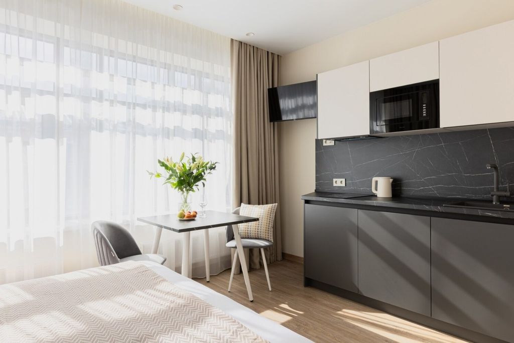 Почувствуйте себя как дома в центре Нижнего Новгорода Для тех, кто ценит комфорт, лучшую локацию и использует разумный подход к деньгам, мы создали камерный апарт-отель Кремлёвский. Это ваш личный уголок в городе, где нет места формальностям и ненужным условностям. Здесь вы с первого взгляда чувствуете себя как дома. Мы убрали всё лишнее — шум крупных сетей и их завышенные цены, — чтобы оставить вам главное: приватность, безупречную чистоту, продуманный сервис и лучшее расположение. Наш апарт-отель расположен на тихой улице — это шаг до Кремля, деловых центров и ресторанов, и миллион шагов от суеты. В вашем распоряжении — продуманное пространство с мини-кухней, где всё под рукой. Выбирайте студию для командировки или просторные апартаменты для семьи, чтобы жить в своем ритме. Это ваш осознанный выбор. Здесь вы не просто останавливаетесь, вы живёте.
