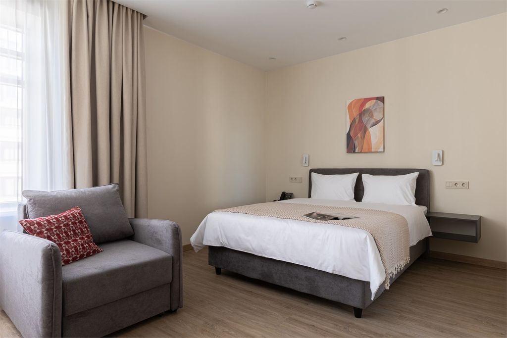 Почувствуйте себя как дома в центре Нижнего Новгорода Для тех, кто ценит комфорт, лучшую локацию и использует разумный подход к деньгам, мы создали камерный апарт-отель Кремлёвский. Это ваш личный уголок в городе, где нет места формальностям и ненужным условностям. Здесь вы с первого взгляда чувствуете себя как дома. Мы убрали всё лишнее — шум крупных сетей и их завышенные цены, — чтобы оставить вам главное: приватность, безупречную чистоту, продуманный сервис и лучшее расположение. Наш апарт-отель расположен на тихой улице — это шаг до Кремля, деловых центров и ресторанов, и миллион шагов от суеты. В вашем распоряжении — продуманное пространство с мини-кухней, где всё под рукой. Выбирайте студию для командировки или просторные апартаменты для семьи, чтобы жить в своем ритме. Это ваш осознанный выбор. Здесь вы не просто останавливаетесь, вы живёте.