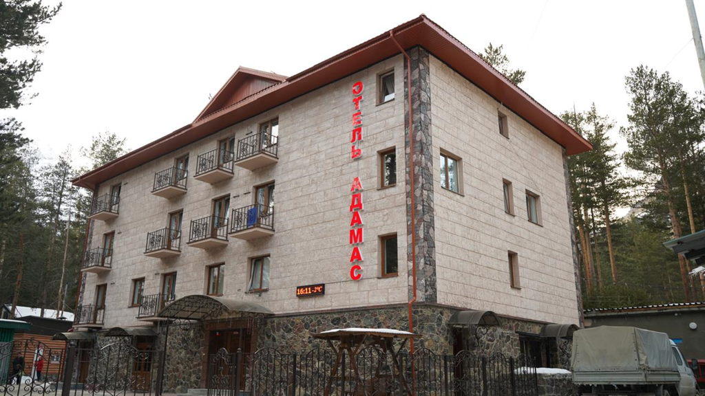 Частный отель «Адамас» находится в сосновом лесу, неподалеку от горной реки, в городе Терскол, уникальное место для зимнего спорта, для экономных туристов. К услугам отдыхающих следующие услуги: сауна, катание на лыжах или сноуборде, частная парковка для личного авто, доступ к Wi-fi, стойка регистрации. Номера предназначены для комфортного отдыха. Комнаты в светлой цветовой гамме, оснащены кроватями (с ортопедическими матрасами), прикроватной тумбой, телевизором, рабочим местом, вместительными шкафами, личной ванной с туалетом. Поесть можно в нашей столовой, в меню которого есть как европейская кухня, так и настоящая кавказская.