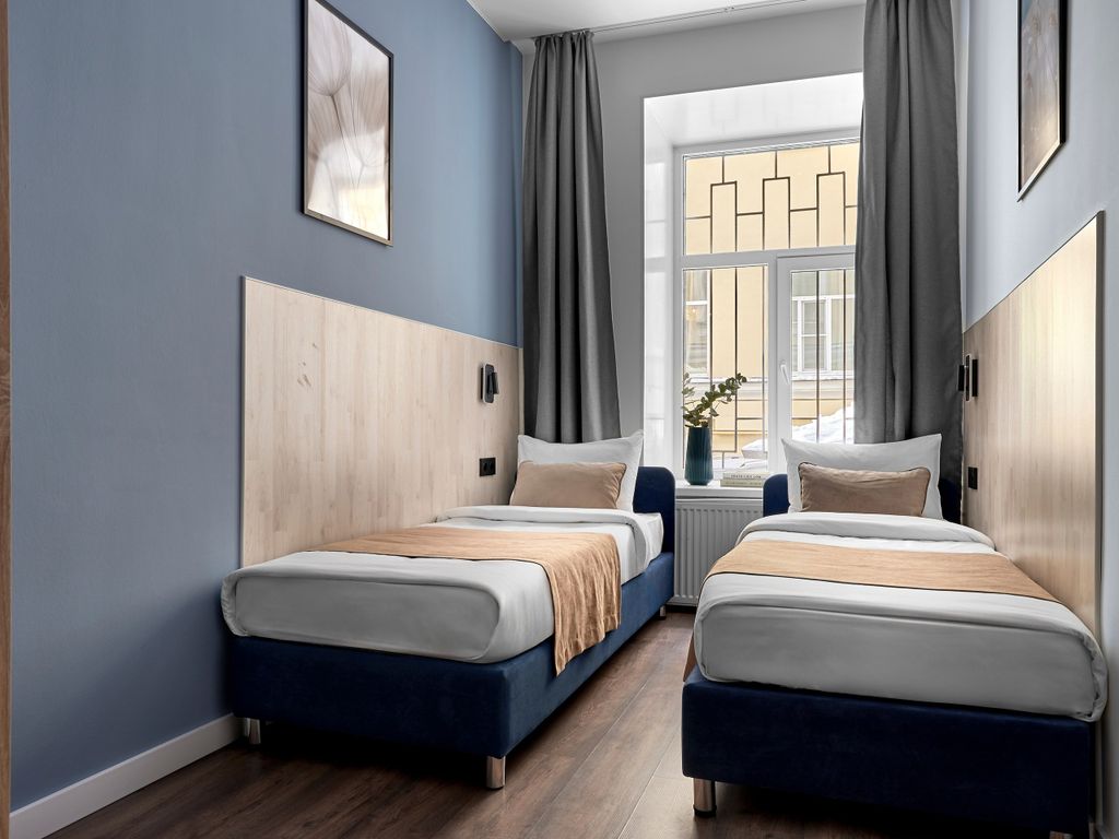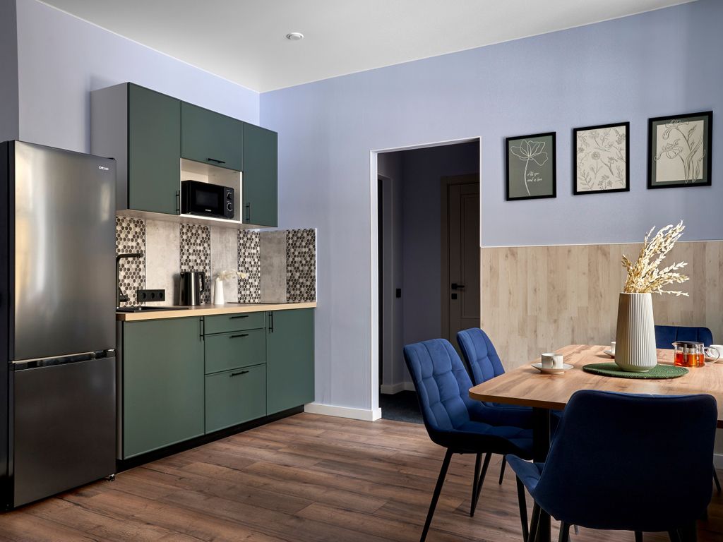 Трёхкомнатные уютные апартаменты для комфортного размещения до 6 гостей — пространство, где тишина становится частью отдыха. Окна выходят в спокойный внутренний двор без городского шума и суеты, поэтому здесь легко выспаться, восстановить силы и почувствовать настоящее уединение даже в центре событий. В апартаментах расположены три отдельные спальни: • первая спальня — две односпальные кровати 80×200 (кровать-бокс) с возможностью удобного раздельного размещения; • вторая спальня — две односпальные кровати 80×200 (кровать-бокс); • третья спальня — двуспальная кровать шириной 140 см, идеально подходящая для глубокого и комфортного сна. Отдельная гостиная зона позволяет проводить время вместе, не нарушая приватность спален — удобно для семей, друзей или деловых поездок. Апартаменты оборудованы собственной кухней (плита, холодильник, микроволновая печь) и стиральной машиной — всё продумано для длительного и комфортного проживания. Для дополнительного удобства гостям предоставляется утюг. О