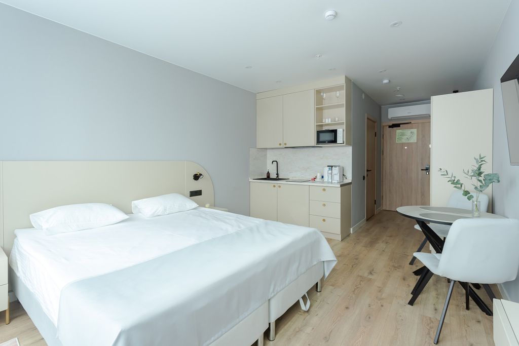 "Реформа на Ладожском" — современный апарт-отель в 3 минутах от метро Ладожская. Мы предлагаем стильные номера и апартаменты с полноценными кухнями, бытовой техникой и продуманными удобствами для вашего отдыха и комфорта. Отель расположен в районе с развитой инфраструктурой, в пешей доступности магазины, кафе и рестораны, аптеки, ТРК и Ладожский вокзал. До исторического центра Санкт-Петербурга всего 10–15 минут на метро или автомобиле. Мы создаём условия, в которых удобно жить, отдыхать и работать: Полноценная кухня: холодильник, плита/индукция, микроволновка, посуда и аксессуары. Бытовая техника: стиральная или посудомоечная машина (по категории), утюг, фен. Быстрый бесплатный Wi-Fi и рабочее место. Постельное бельё, полотенца, базовые удобства. Регулярная уборка и смена белья