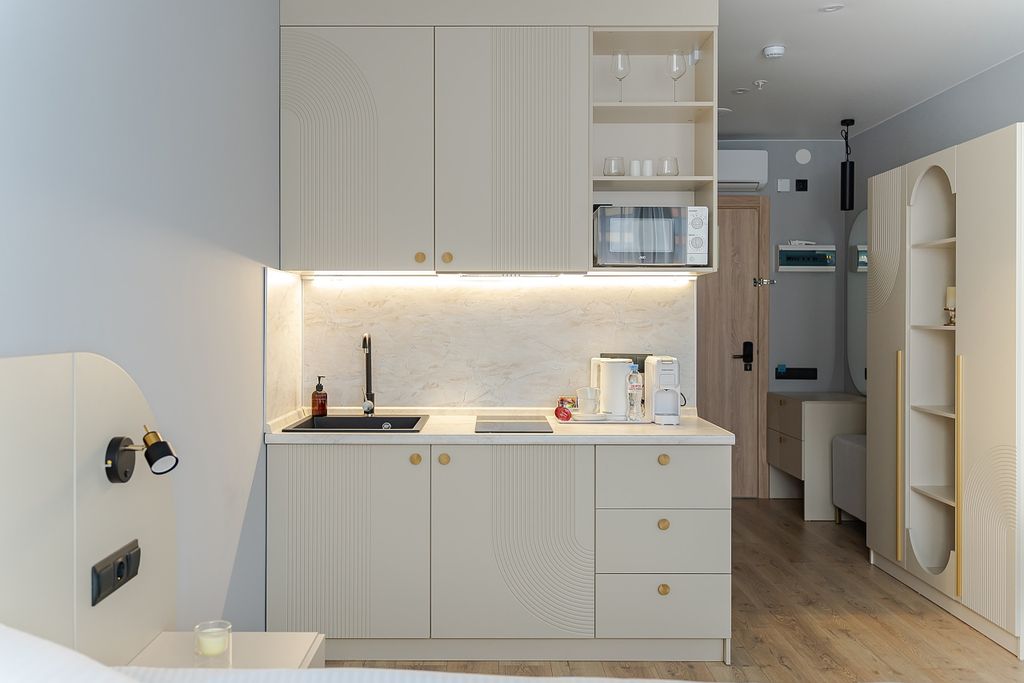 "Реформа на Ладожском" — современный апарт-отель в 3 минутах от метро Ладожская. Мы предлагаем стильные номера и апартаменты с полноценными кухнями, бытовой техникой и продуманными удобствами для вашего отдыха и комфорта. Отель расположен в районе с развитой инфраструктурой, в пешей доступности магазины, кафе и рестораны, аптеки, ТРК и Ладожский вокзал. До исторического центра Санкт-Петербурга всего 10–15 минут на метро или автомобиле. Мы создаём условия, в которых удобно жить, отдыхать и работать: Полноценная кухня: холодильник, плита/индукция, микроволновка, посуда и аксессуары. Бытовая техника: стиральная или посудомоечная машина (по категории), утюг, фен. Быстрый бесплатный Wi-Fi и рабочее место. Постельное бельё, полотенца, базовые удобства. Регулярная уборка и смена белья