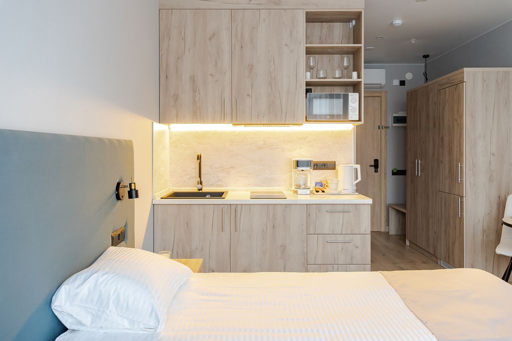 "Реформа на Ладожском" — современный апарт-отель в 3 минутах от метро Ладожская. Мы предлагаем стильные номера и апартаменты с полноценными кухнями, бытовой техникой и продуманными удобствами для вашего отдыха и комфорта. Отель расположен в районе с развитой инфраструктурой, в пешей доступности магазины, кафе и рестораны, аптеки, ТРК и Ладожский вокзал. До исторического центра Санкт-Петербурга всего 10–15 минут на метро или автомобиле. Мы создаём условия, в которых удобно жить, отдыхать и работать: Полноценная кухня: холодильник, плита/индукция, микроволновка, посуда и аксессуары. Бытовая техника: стиральная или посудомоечная машина (по категории), утюг, фен. Быстрый бесплатный Wi-Fi и рабочее место. Постельное бельё, полотенца, базовые удобства. Регулярная уборка и смена белья