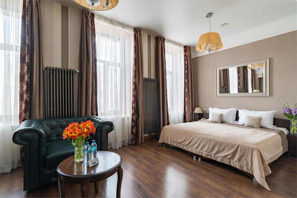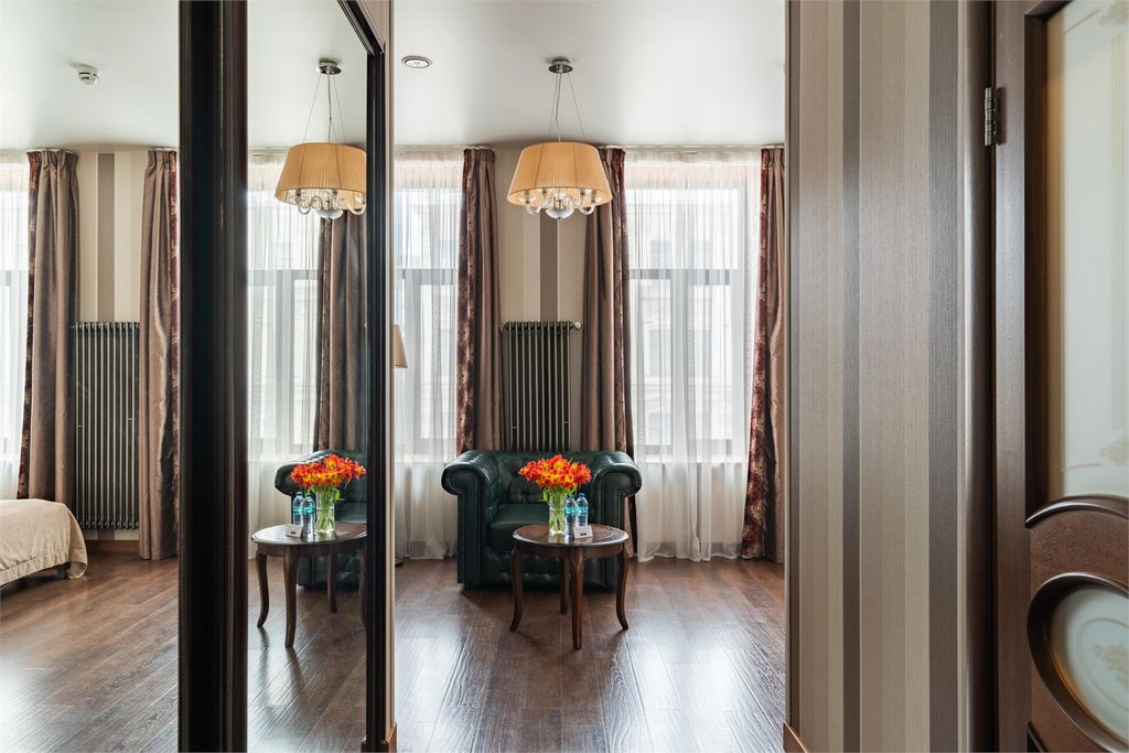 Наш отель находится в самом центре Петербурга в Доходном доме Фуфаевских в непосредственной близости к Московскому вокзалу. Это старинное здание, выполненное в стиле эклектика, первоначально было построено архитектором Акининым Е.Е. в середине XIX века. В 1899 году дом был приобретен и перестроен архитектором Фуфаевским Л.Л., появилось 3 дополнительных этажа. Леонид Леонидович Фуфаевский проживал в этом доме со своей семьей, а также сохранял статус дома под сдачу (доходного). Таким образом, здание хранит имена известных и выдающихся деятелей культуры, которые в тот или иной период истории проживали в нём. 1907 — 1917. Александр Дранков — пионер российского кинематографа. С 1907 года и до Октябрьской Революции в этом здании находилась первая в России кинопроизводственная компания его имени — Акционерное общество «А. Дранков и К°» — на базе которой было снято около сотни фильмов. Включая первую в истории российскую кинокартину "Стенька Разин", первый в мире документальный фильм