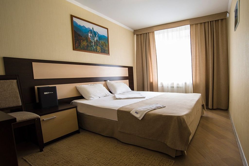 Гостиница «Sky Отель» 3 звезды в Красноярске Hello! Гостиница расположилась на правом берегу реки Енисей, в тихом районе города Красноярска, с удобной транспортной развязкой, создавая тем самым, гостям нашей гостиницы идеальные условия для работы и отдыха. Преимуществом гостиницы «Sky отель» является редкое сочетание тишины, чистого воздуха в динамичном городе. Уютные, просторные номера, оборудованы всем необходимым для комфортного отдыха и плодотворной работы. Расположение гостиницы позволит Вам без труда добраться до исторического центра города, знаменитого заповедника «Столбы», спортивного комплекса «Арена Платинум» и фанпарка «Бобровый лог». Мы внимательно следим за уровнем сервиса и со всей душой относимся к своим гостям, их желаниям и предпочтениям. Возвращаться в нашу гостиницу - хорошая традиция, потому что здесь всегда Вас ждут и всегда Вам рады.