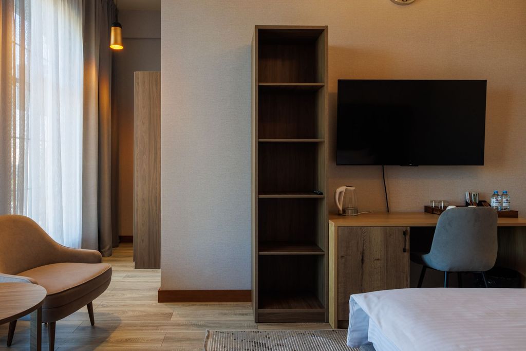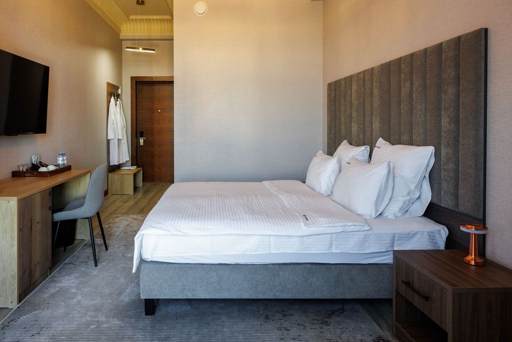 Добро пожаловать в «Di Mare Hotel» – современную и уютную гостиницу, расположенную в самом центре города Каспийск. Если вы ищете идеальное место для отдыха или деловой поездки, «Di Mare Hotel» предложит вам комфорт, удобство и гостеприимство на самом высоком уровне. «Di Mare Hotel» выгодно расположен в самом сердце Каспийска, что позволяет гостям легко добраться до основных достопримечательностей, бизнес-центров и торговых точек. Аэропорт находится всего в 20 минутах езды, что делает наше местоположение особенно удобным для путешественников. Мы предлагаем широкий выбор номеров, от уютных стандартов до роскошных люксов. В каждом номере «Di Mare Hotel» вы найдете все необходимое для комфортного проживания: Современная мебель и стильный интерьер Индивидуальная система кондиционирования Телевизор с плоским экраном и спутниковыми каналами Бесплатный Wi-Fi Мини-бар Просторная ванная комната с современными удобствами