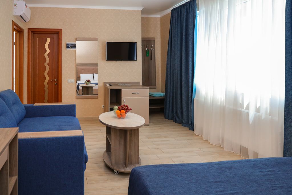 Уникальные услуги для каждого гостя Номера (от 2 до 5 гостей) 7 этажей, два лифта, 58 номеров различных категорий, из которых можно выбрать подходящий вариант. Питание (шведская линия) Для наших гостей доступен свободный выбор типа питания: «завтрак» или «полный пансион плюс». Для детей (0–3 лет) Коляски, кроватки, манежи, стульчики для кормления, ступеньки для ванной, подогреватели бутылочек. Активности (для взрослых и детей) Тренажёрный зал, настольный теннис, настольный футбол, диско-вечеринки, детская и взрослая анимация. Море (350 метров) Пляж с мелкой галькой и пологим входом. Выделенная площадка с зонтами и мягкими шезлонгами. Бассейн (20 метров) Открытый подогреваемый бассейн «инфинити» с аттракционом «кобра», подводным аэро- и гидромассажем. Территория (5096 м²) Закрытая территория с подземной парковкой и круглосуточным видеонаблюдением.