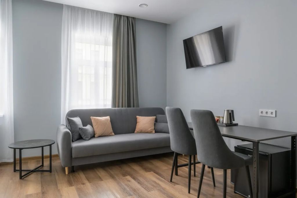 Откройте для себя комфорт и удобство в гостинице «На Сайдашева 2» в центре Казани. Предлагаются современный дизайн и безупречный ремонт, создавая идеальные условия для вашего пребывания. Независимо от цели вашей поездки – будь то семейный отдых, индивидуальное путешествие или деловая командировка – вы найдете подходящий вариант среди наших номеров категорий: от классического, до бизнес и комфорт. Просторные и наполненные светом комнаты оснащены всем необходимым, включая полы с подогревом для дополнительного уюта в любое время года и шторы с электроприводом для легкого регулирования освещения. Для каждого гостя предусмотрен комплект высококачественных туалетных принадлежностей (одноразовые зубные щетки, шампунь, гель для душа, мыло) и мягкий хлопковый халат, а для маленьких гостей в семейных номерах – специальные детские халаты. В номерах установлены чайный набор, электрический чайник, холодильник. Поблизости работают кафе и рестораны.