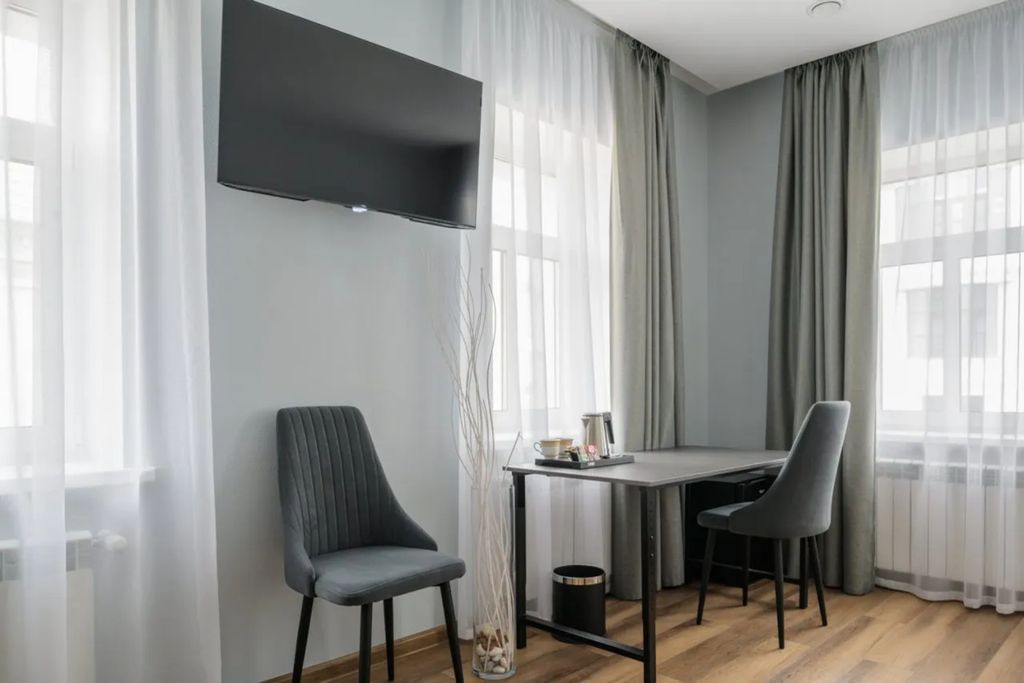 Откройте для себя комфорт и удобство в гостинице «На Сайдашева 2» в центре Казани. Предлагаются современный дизайн и безупречный ремонт, создавая идеальные условия для вашего пребывания. Независимо от цели вашей поездки – будь то семейный отдых, индивидуальное путешествие или деловая командировка – вы найдете подходящий вариант среди наших номеров категорий: от классического, до бизнес и комфорт. Просторные и наполненные светом комнаты оснащены всем необходимым, включая полы с подогревом для дополнительного уюта в любое время года и шторы с электроприводом для легкого регулирования освещения. Для каждого гостя предусмотрен комплект высококачественных туалетных принадлежностей (одноразовые зубные щетки, шампунь, гель для душа, мыло) и мягкий хлопковый халат, а для маленьких гостей в семейных номерах – специальные детские халаты. В номерах установлены чайный набор, электрический чайник, холодильник. Поблизости работают кафе и рестораны.