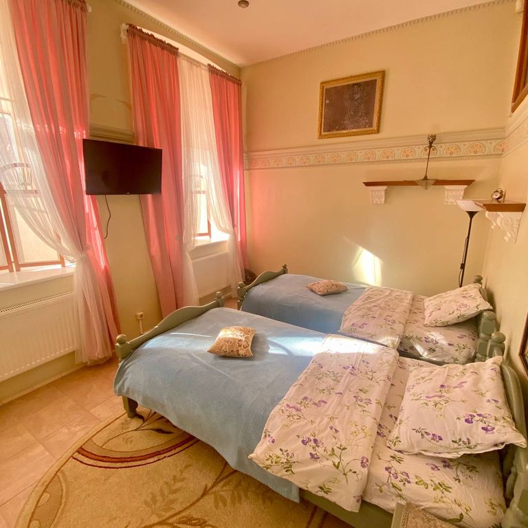 Добрый день! Предлагаем вам красивые апартаменты в мини-отеле "дом Ильяшева", расположенном в старинном особняке 1907 года постройки, в историческом районе г. Пскова. Наш мини-отель состоит из 2 3-х местных номеров, и одного семейного двухкомнатного номера, индивидуальная туалетная комната к каждому номеру вынесена на этаж. Имеются места общего пользования: зона отдыха с диваном и телевизором, кухонная зона, с возможностью приготовления пищи и обеденный стол. Описание: -Размещение до 3 гостей, -Ремонт май 2023 г., -Площадь стандартных номеров 14 м. кв., -Площадь семейного номера 25 м2 -2-х спальная кровать, -Возможность установки дополнительного спального места. Стоимость дополнительного спального места 800 рублей. Оснащение: -Микроволновая печь, стиральная машина, холодильник, эл. чайник, вся необходимая кухонная утварь, утюг, гладильная доска, фен, постельное бельё, полотенца. Не для проведения мероприятий и корпоративов! Курить запрещается! Добро пожаловать!