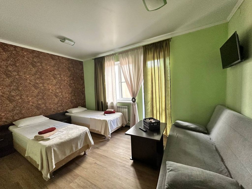 Мини-гостиница «Саулук» находится в 450 м от канатки. У нас очень удобное расположение: до центра пешком 3 минуты, рядом магазины («Пятерочка», алкомаркет, местные деликатесы), кафешки, рынок. Две минуты до фермы альпак, где так интересно погулять с детьми. До ватрушек и детских аттракционов пешком минут 5–7. Несколько минут идти до спа-центра с теплыми бассейнами. В то же время мы находимся в окружении леса в тихом месте. Великолепные виды открываются с балконов на лес и горы. У нас всего 4 номера на этаже. Поэтому отдыхать вы будете в тишине, а до всех развлечений удобно дойти пешком. В номерах тепло, все удобства: санузел с душем (отопление и горячую воду греем в своей котельной), в санузлах теплый пол. В номере: ТВ, холодильник, Wi-Fi. Наличие балкона уточнять. Можно заказать номер с совместной или отдельными кроватями. В общей зоне есть микроволновка, чайники, необходимая посуда и столы со стульями. Завтраки можно заказать на месте. Есть место для хранения оборудования, прокат,