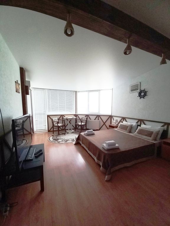 Наши номера находятся на 4 этаже. Апартаменты «у самого моря» - расположены на песчаном пляже в непосредственной близости от моря. Вы будете, засыпать и просыпаться под шум морского прибоя, вдыхая целебный морской воздух. Из каждого номера отеля открывается вид на море. Вместе с тем, супермаркеты, рынки, магазины, рестораны, кафе, столовые, находятся в шаговой доступности. Если вы приехали к нам на своем автомобиле, у нас есть парковка на огороженной охраняемой территории Для маленьких гостей на территории есть детская площадка.