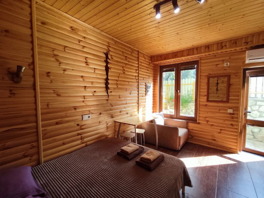 Уютный гостевой дом "Марина" на 5 номеров расположен в живописном уголке Гурзуфа с прекрасным видом на горы. Идеальное место для спокойного отдыха вдали от городской суеты, но в удобной доступности ко всем достопримечательностям и инфраструктуре посёлка. Общая характёристика: Индивидуальный подход к каждому гостю; Терраса для отдыха и барбекю есть на территории; Парковка для гостей - при бронировании наличие свободной парковки на ваши даты пожалуйста уточните; Бесплатный wi‑fi. Номера (5 единиц): Каждый номер оформлен в современном стиле с использованием натуральных материалов и продуманным дизайном. В наличии: 2 однокомнатных номера без балкона (площадь 16 м², рассчитаны на 2 человек, есть доп место для ребёнка): двуспальная кровать, шкаф, столик, телевизор, кондиционер, кухня, сан узел; 2 улучшенных номера с балконом и панорамными окнами (площадь 28м² и 30м рассчитаны на 2–4 человек): двуспальная кровать + раскладной диван, кондиционер, телевизор, стол, шкаф, кухня