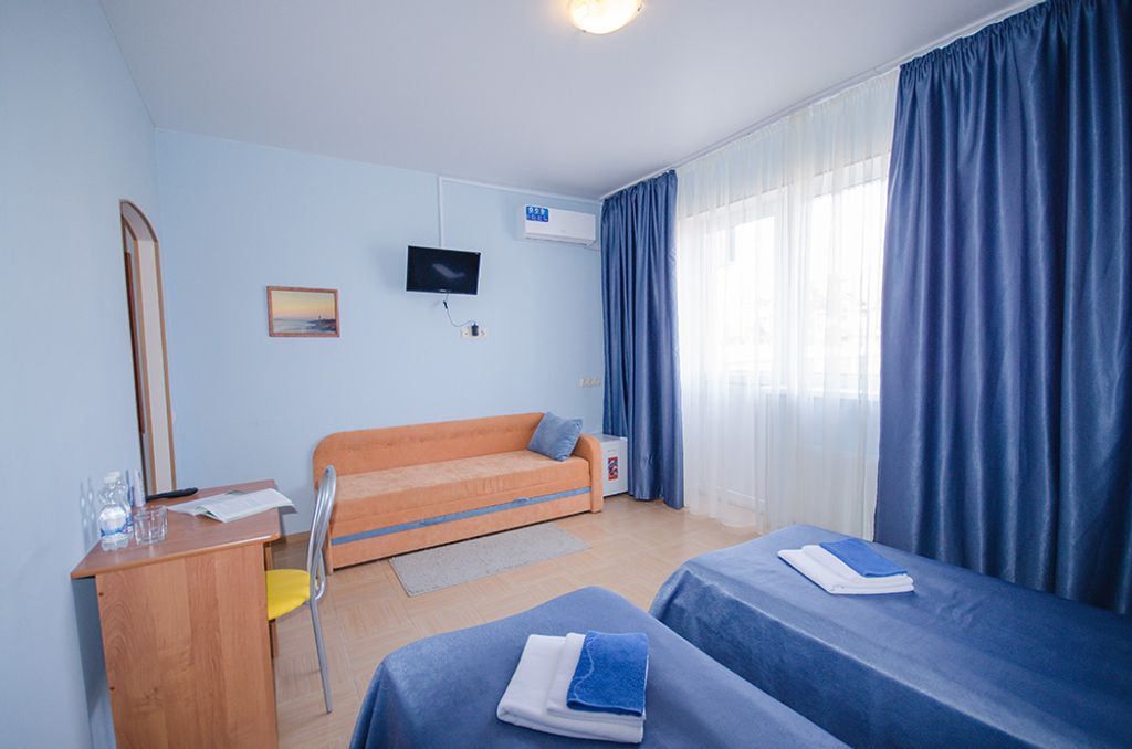 Наш гостевой дом находится «на краю света», в самой юго-западной оконечности Крымского полуострова и города Севастополя, в районе бухты Казачьей, недалеко от мемориального комплекса «35 береговая батарея». Район Казачьей бухты, по научному – Херсонесский полуостров (в народе – «Казачку»), сложно назвать курортом. Но и городом ее не назовешь. Географически этот район окружен морем с трёх сторон. Тихий и спокойный, он популярен благодаря разнообразию пляжей и чистой морской воде. Круглый год гостевой дом работает для тех, кому необходимо комфортное размещение и качественное домашнее питание на время пребывания в Севастополе. Вы можете остановиться у нас как на одни сутки, так и на более длительный срок. Поможем наладить Ваш быт и освободить от ненужных в путешествии хлопот. Гостевой дом располагает 15 номерами, из которых 12 стандартных двухместных номеров, 4 двухместных улучшенных стандартных номера, 2 двухместных студии, 1 двухместный полу-люкс и 1 апартамент. В каждом номере: ванная