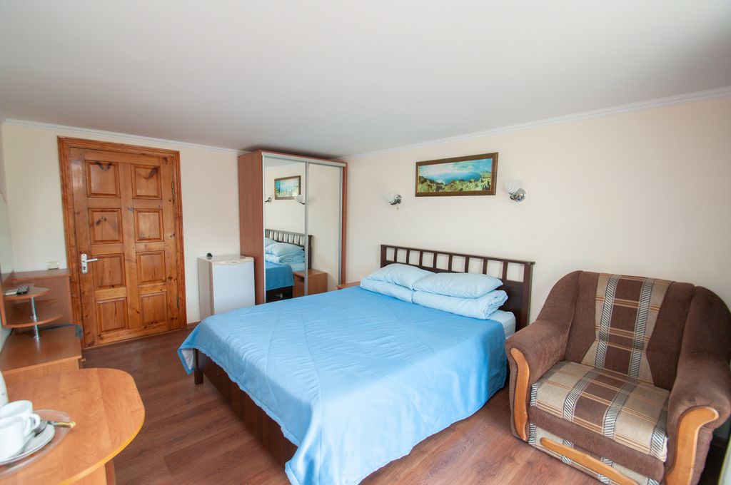 В летний период с 1 мая по 30 сентября предоставляется питание. Гостевой дом находится в 55 метрах над уровнем моря на Киловой горе. Это единственное месте Коктебеля, откуда открываются потрясающие виды на весь Коктебельский залив, подножье древнего потухшего вулкана Кара-Даг и всю Коктебельскую набережную. В пяти минутах или 350 метрах ходьбы от нас находятся 3 пляжа: два галечных на центральной набережной со средней галькой и один – с мелкой, возле заповедника Кара-Даг. Гостевой дом представлен 2мя корпусами с номерами стандарт и делюкс класса на 1-4 человека. Бесплатный Wi-Fi по все территории. В просторных номерах Гостевого дома есть цифровое телевидение и собственная душевая комната с туалетно-косметическими принадлежностями, холодильник, телевизор, кондиционер, электрочайник и фен, набор посуды. В каждом номере имеется балкон с видом на Чёрное море или живописные горы Кара-Даг. На территории гостевого дома: мангал, кухня с поваром, бесплатная парковка Каждое утро мы начинае