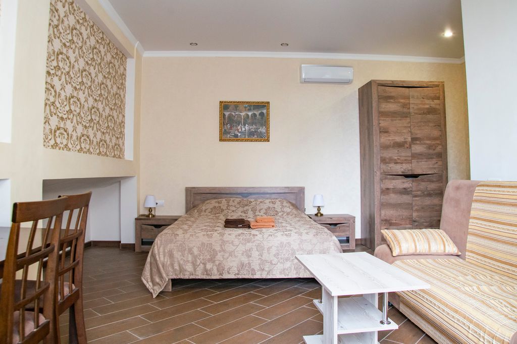 Гостевой дом "На Круче" находится в районе толстого мыса Геленджика, в 100 метрах от отеля "Метрополь" с концертным залом и в 100 метрах от открытого моря с новой красиво оформленной набережной, где можно полюбоваться прибоем моря и закатом солнца. В 60 метрах от гостевого дома на берегу открытого моря оборудована красивейшая набережная с детскими игровыми площадками, спортивными снарядами, скульптурами и скамейками для отдыха До моря и галечного пляжа "Метрополь" 7-10 минут неторопливым шагом. Здание дома построено из современных материалов, сделан хороший ремонт. К размещению предлагаются номера категории "стандарт». В каждом номере есть система кондиционирования, телевизор, холодильник, вся необходимая мебель и отдельный санузел+душевая. В части номеров есть кухня, терраса или балкон. На территории для гостей работает бесплатный wi-fi. Готовить можно самостоятельно на просторной общей кухне со всем необходимым. Парковка автомобиля на придомовой т