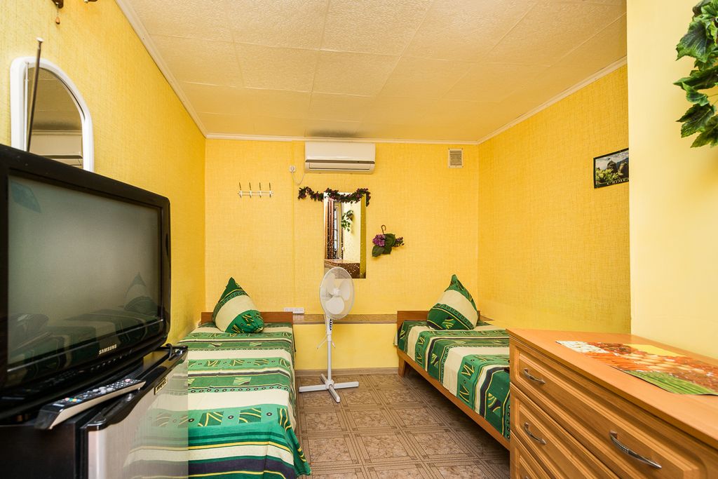 Гостевой дом находится в центре города судак. Ко всем пляжам и достопримечательностям нашего города ( п. Новый свет, тропа голицина, пляж у горного массива алчак-кая, пляжи веселовской бухты, пляж капсель, пляж мыс меганом., генуэзская крепость) можно добраться на общественном транспорте потратив на дорогу 10-20 минут. 2-х, 3-х, 4-х местные номера оборудованы: холодильник, телевизор, зеркало, шкаф, комод, деревянные кровати, санузел, душ. В общем пользовании: кухня (газ), посуда для приготовления пищи, большой зелёный двор с местами для отдыха, мангал. Wi-fi. (бесплатно). Рядом центральный рынок, магазины, кафе, автовокзал