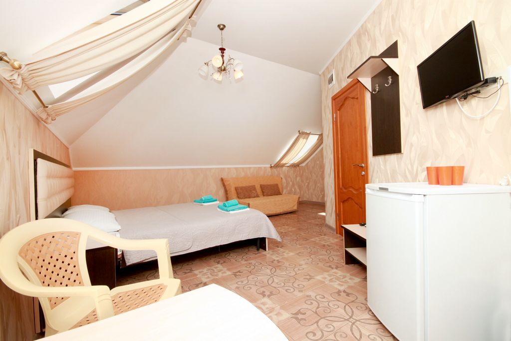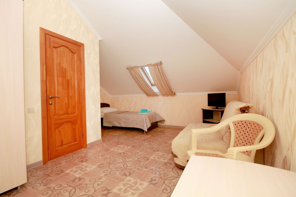 Расположение: в 2-х минутах ходьбы от галечного пляжа, в 10 минутах ходьбы от песчаного. Рядом находится санаторий дилуч, надежда, русь — гости могут приобрести курсовки на оздоровление. В шаговой доступности набережная, символ курорта маяк, бювет, детский аквапарк осминожка. До продуктового рынка, центральной площади, детского парк всего 5−7 минут ходьбы. Закрытая территория: три бассейна (малый — 3*4 глубина 1, 6; большой — 5*16 глубина 1, 6; бассейн с противотоком 9*11, глубиной 1.6 ), зона для загара, лежаки, двор со столиками, лавочки, навес для отдыха, беседки, детская площадка, ведется видеонаблюдение. На каждом этаже (кроме мансардного) терраса со столиками для отдыха. В общее пользование предоставляются: микроволновка / посуда / чайник — все в столовой Один раз в 10 дней с 20−00 до 21−30 проводится анимационная программа для детей. Дополнительное место: 500 руб. /сут. На человека Прокат детских стульчиков, колясок, кроваток — 400 руб. /день (при наличии) Дети: с любого