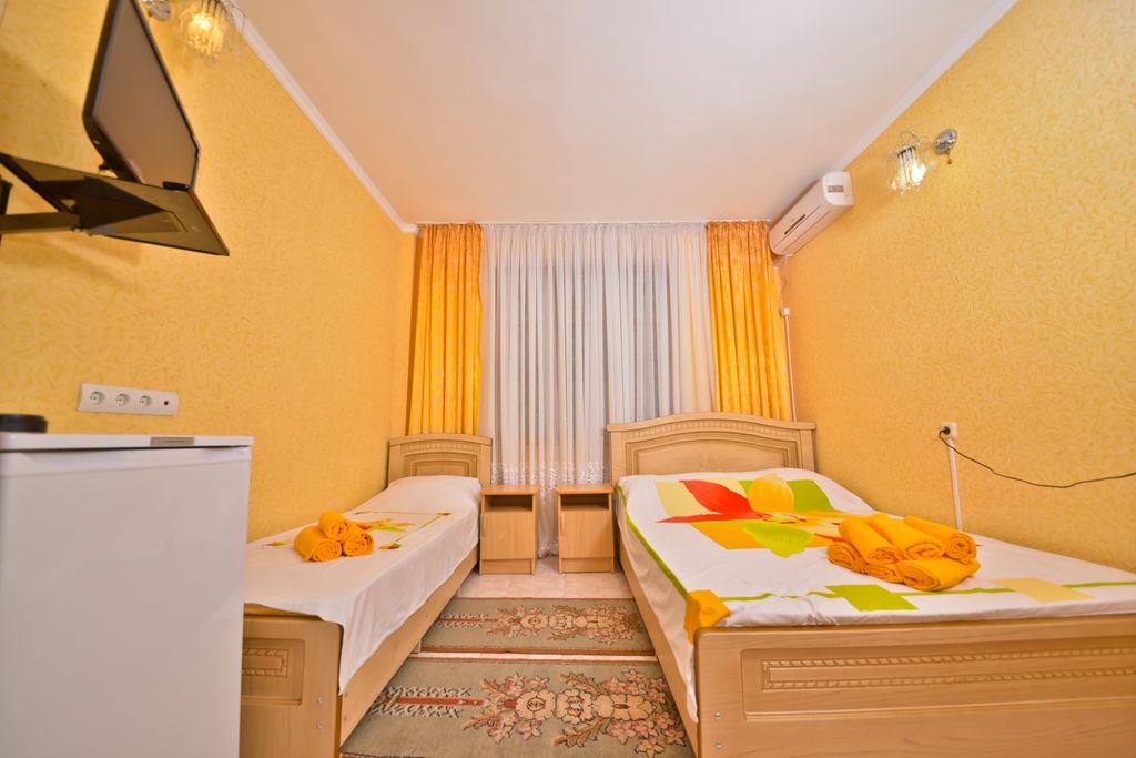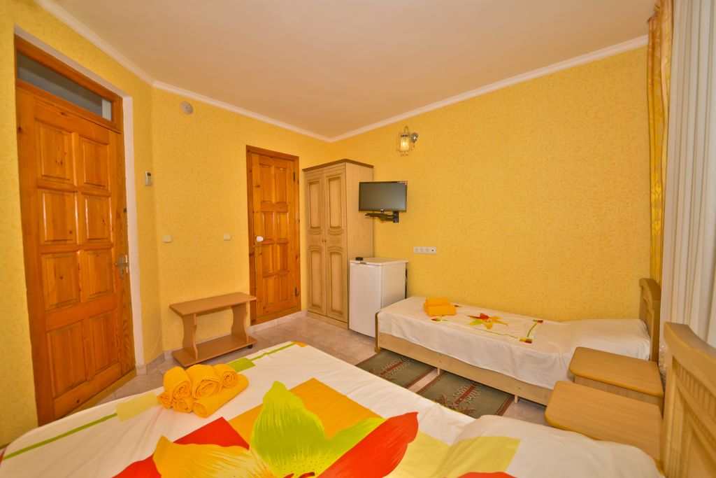 Наша гостиница расположена на улице Терская 70. Эта тихая, тенистая и зеленая улочка. Наш дом выгодно расположен в центре Анапы. Благодаря удобному расположению вы сможете посетить развлекательные центры и пляж за короткое время. До песчаного пляжа вы дойдете за пять минут, а до галечного не более десяти минут. В паре минут находится Театральная площадь, где происходят все значимые мероприятия города. Лечение можно пройти в санатории «Мотылек», «Дилуч», и других, которые расположены всего в трех минутах пути. Развлечься и весело провести время вы сможете в аквапарке, который находится в пяти минутах. Все номера с удобствами. Из окон открывается отличный вид на дворик. Территория озеленена. Вход через дверь с кодовым замком, так же работает видеонаблюдение. Во дворе находятся столики, которые находятся под тенью винограда. Wi — Fi доступен в номерах. Кушать вы можете самостоятельно. Есть кухня с набором посуды. Организуем трансфер для наших гостей.