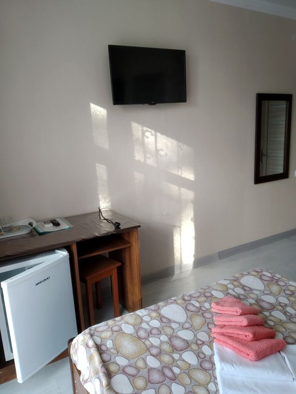 Наша гостиница расположена на улице Терская 70. Эта тихая, тенистая и зеленая улочка. Наш дом выгодно расположен в центре Анапы. Благодаря удобному расположению вы сможете посетить развлекательные центры и пляж за короткое время. До песчаного пляжа вы дойдете за пять минут, а до галечного не более десяти минут. В паре минут находится Театральная площадь, где происходят все значимые мероприятия города. Лечение можно пройти в санатории «Мотылек», «Дилуч», и других, которые расположены всего в трех минутах пути. Развлечься и весело провести время вы сможете в аквапарке, который находится в пяти минутах. Все номера с удобствами. Из окон открывается отличный вид на дворик. Территория озеленена. Вход через дверь с кодовым замком, так же работает видеонаблюдение. Во дворе находятся столики, которые находятся под тенью винограда. Wi — Fi доступен в номерах. Кушать вы можете самостоятельно. Есть кухня с набором посуды. Организуем трансфер для наших гостей.