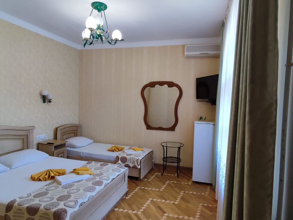 Наша гостиница расположена на улице Терская 70. Эта тихая, тенистая и зеленая улочка. Наш дом выгодно расположен в центре Анапы. Благодаря удобному расположению вы сможете посетить развлекательные центры и пляж за короткое время. До песчаного пляжа вы дойдете за пять минут, а до галечного не более десяти минут. В паре минут находится Театральная площадь, где происходят все значимые мероприятия города. Лечение можно пройти в санатории «Мотылек», «Дилуч», и других, которые расположены всего в трех минутах пути. Развлечься и весело провести время вы сможете в аквапарке, который находится в пяти минутах. Все номера с удобствами. Из окон открывается отличный вид на дворик. Территория озеленена. Вход через дверь с кодовым замком, так же работает видеонаблюдение. Во дворе находятся столики, которые находятся под тенью винограда. Wi — Fi доступен в номерах. Кушать вы можете самостоятельно. Есть кухня с набором посуды. Организуем трансфер для наших гостей.