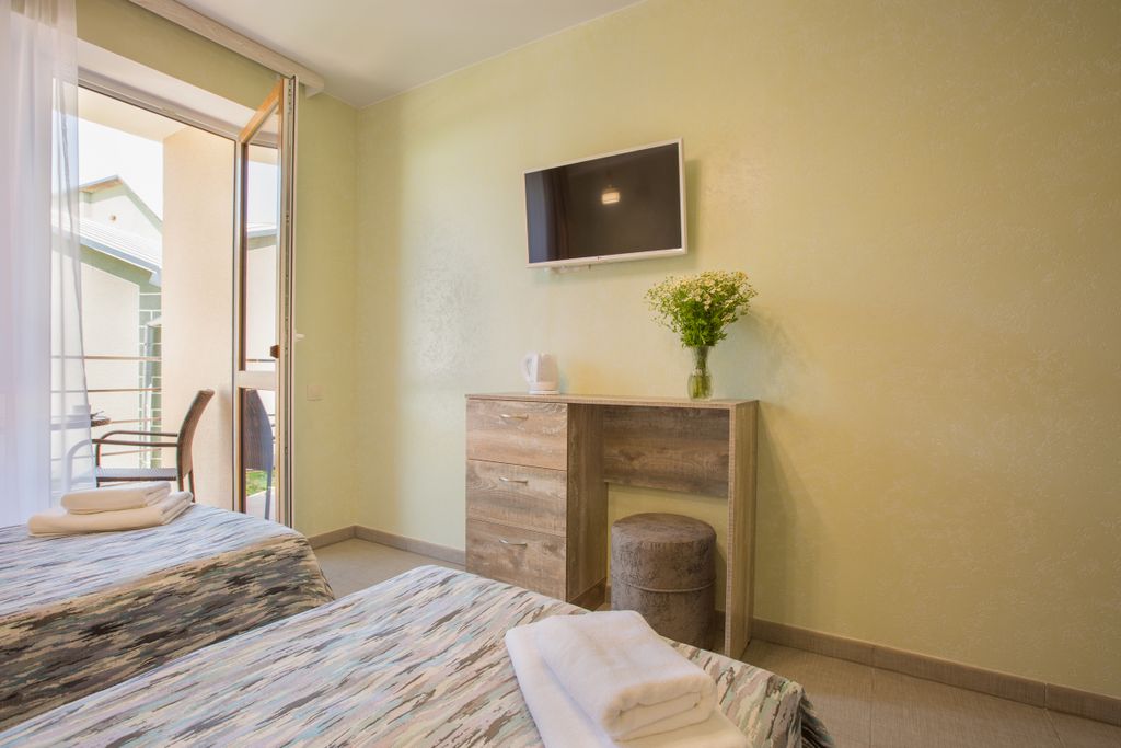 Отель был построен в 2019 году, вся мебель, техника, посуда, сантехника новые. В каждом номере кондиционер, плоский телевизор, сейф, личный санузел с душевой кабиной. Гости имеют возможность пользоваться кухней (общая на этаже/личная в номере). Ежедневная уборка номеров. ⠀ 750 метров от центра. ⠀ 10 минут прогулочным шагом до моря. ⠀ Развитая инфраструктура, в шаговой доступности рынок, магазины, кафе. На территории в свободном доступе зона барбекю с камином, где вы можете приготовить любимое блюдо.