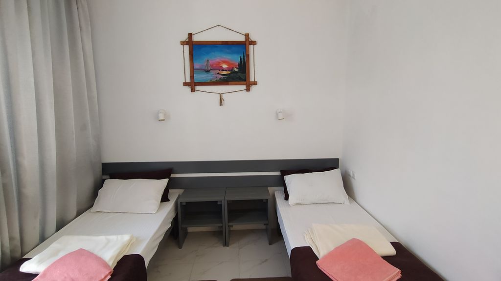 Отдых для всей семьи в Крыму, г.Евпатория, пос.Заозерное. Разные варианты проживания: апартаменты, с удобствами, эконом, семейные двухкомнатные номера и коттедж под ключ. Зелёный двор, детская площадка, интернет. Питание можно заказывать или готовить самостоятельно. Рядом 2 магазина, остановка автобуса, детская площадка, летнее кафе. На посёлке почта, церковь, субботняя ярмарка, амбулатория, санатории с возможностью лечения, аптека. В радиусе 2 км – солёное озеро, археологические раскопки.