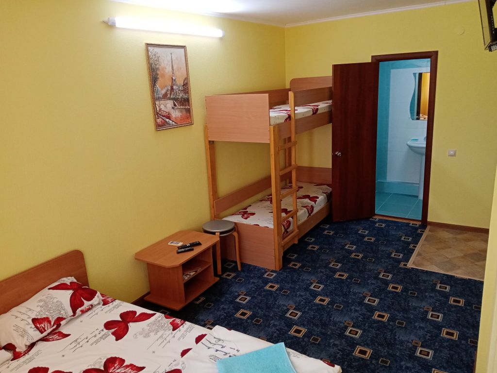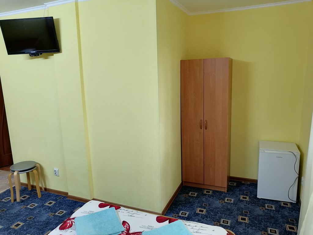 Все номера нашего гостевого дома оснащены кондиционерами, телевизорами ЖК (20 цифровых каналов), холодильниками. В каждом номере свой душ-туалет, вода горячая и холодная без перебоев (даже в тех случаях, когда в городе ее нет). Предоставляется постельное бельё и полотенца. Wi-Fi на всей территории. Услуги стиральной машины бесплатно. В каждом номере представлена информация кафе и ресторанов, где вы можете заказать понравившееся вам блюдо с доставкой до номера. На территории отдыха: оборудована полноценная кухня (газ, плита, холодильник, микроволновка, мангал, вся необходимая посуда в достаточном количестве), столики под виноградом, гладильная доска с утюгом, небольшая библиотека, уголок для игр. Стоянка для машин бесплатно, вся территория под видеонаблюдением. Мы не предоставляем питание, ежедневную уборку в номерах, у нас нет бассейна. Наш гостевой дом для тех, кто после моря хочет с удовольствием приготовить что-то вкусненькое и посидеть теплым летним вечером под виноградом. Уборку г