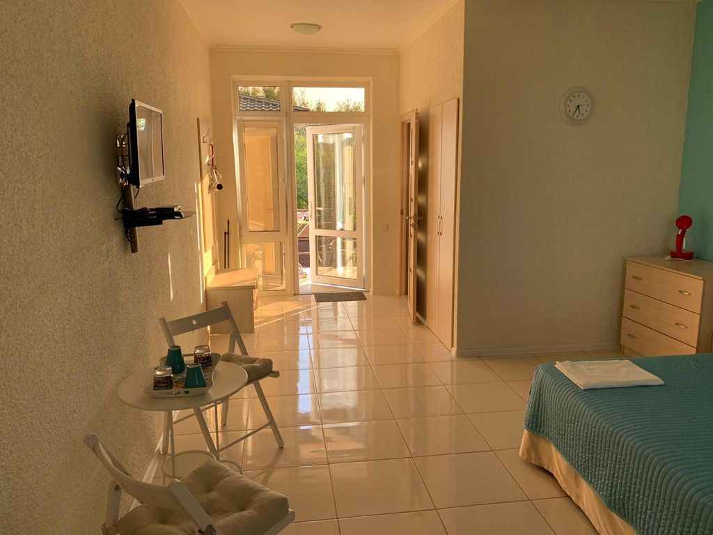 Небольшой гостевой дом на 8 номеров, территория 8 соток с садом, детским открытым бассейном, зоной барбекю с мангалом и тандыром, бесплатной парковкой для гостей расположен в 1, 2 км. От центра и 200 м. От моря. На территории находится отдельно стоящая кухня, со всем необходимым, для самостоятельного приготовления еды (варочные панели, свч печь, мультиварка, блендер, тостер, посуда, двухкамерные холодильники, электрочайники). По желанию можно воспользоваться услугами нашего повара, за отдельную плату.Со взрослого человека в день( дети оговариваются отдельно). В шаговой доступности магазин продуктов. Кафе, детский парк развлечений Емеля. Бесплатный wi-fi на территории.Все номера с отоплением (водяные радиаторы).