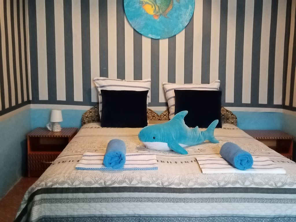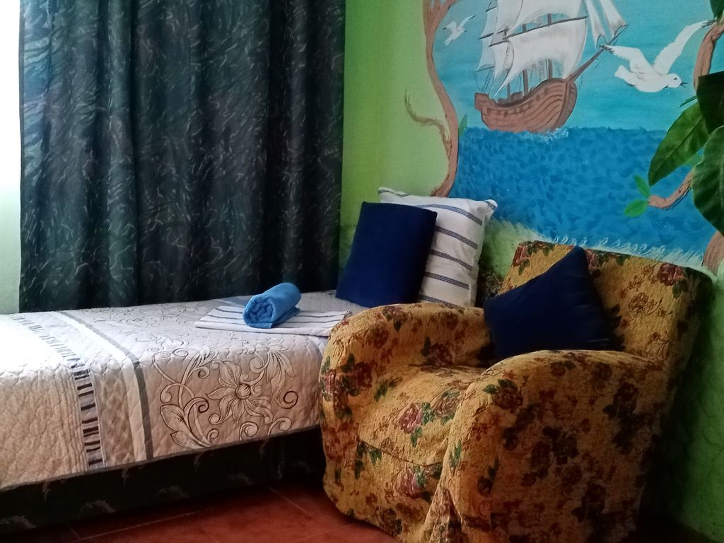 Наш "сказочный дворик", в стиле альпинария, находится в 7 минутах ходьбы от уреза воды чёрного моря в частном домовладении, в котором вас встретят разные сказочные герои. Полулюкс на втором этаже дома: в комнате кровати, тумбочки, шкаф, холодильник, вентилятор, сейф, посуда. В санузле: душ - горячая/холодная вода, умывальник, унитаз. Полулюкс (одноэтажное здание): в комнате кровати, шкаф, холодильник, телевизор, кондиционер, сейф, посуда. В санузле: душ - горячая/холодная вода постоянно, умывальник, унитаз. Часть наземных номеров обеспечены кондиционером